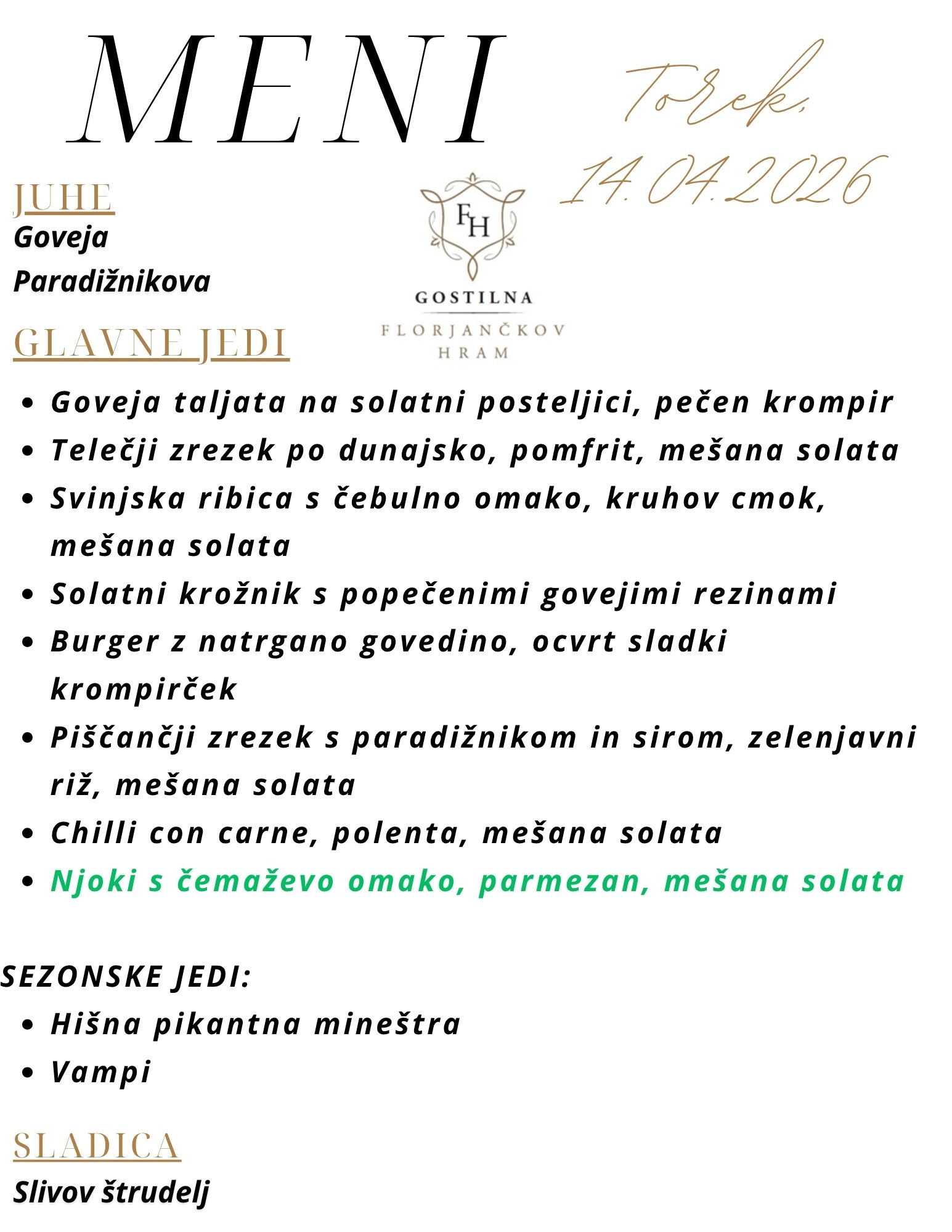 MENU GIORNALIERO
